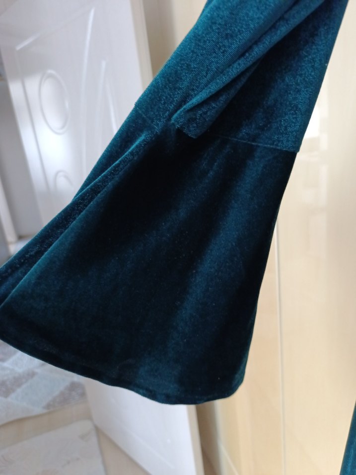 Kadınlar için uzun kollu, lacivert renkte, desen içermeyen, rahat ve şık bir uzun elbisedir.