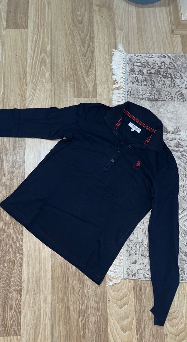 Lacivert uzun kollu, düğmeli yakalı polo tişört. Baskılı desenli, rahat kesimli, günlük kullanım için uygun, yumuşak ve sıcak kumaştan üretilmiştir.