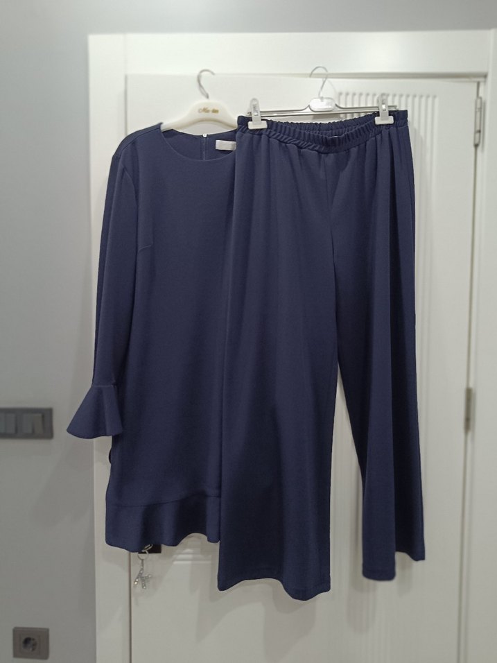 Kadınlar için tasarlanmış, bol kesim ve uzun kollu lacivert pijama takımıdır. Minimalist, desen içermeyen sade ve rahat bir stildir.