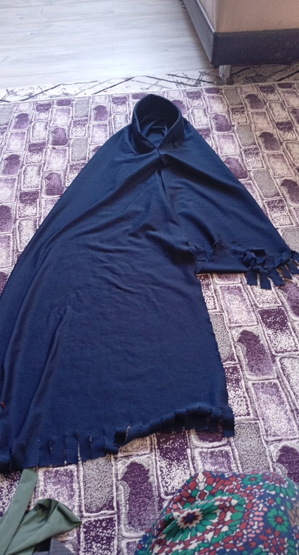 Kadınlar için lacivert uzun panço, boğazlı ve dökümlü tasarıma sahiptir. Uzun kollu, rahat kesim ve yumuşak, sıcak kumaştan üretilmiştir.