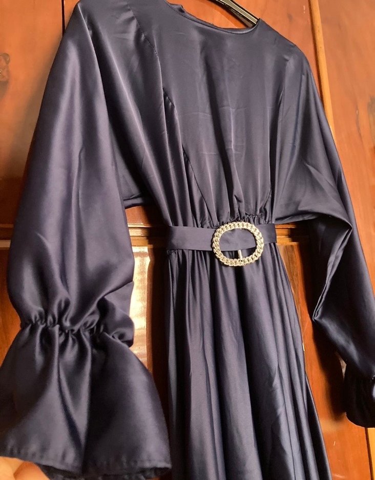 Kadın Lacivert Uzun Saten Elbise