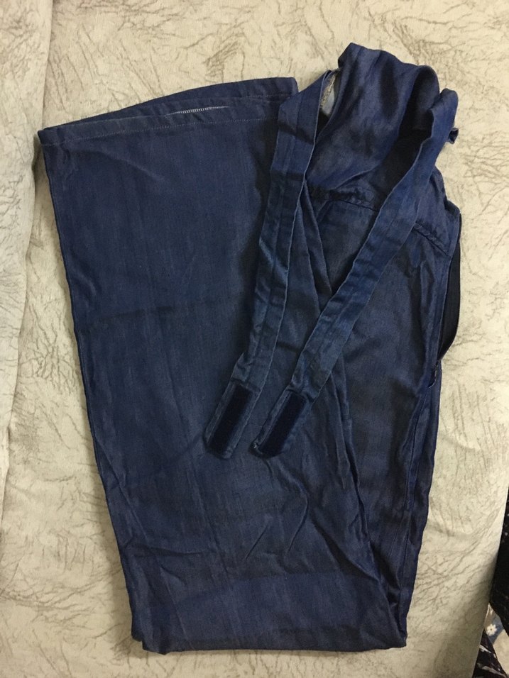 Kadınlar için lacivert renkte, kemerli ve düz kesim uzun tulum günlük kullanıma uygundur.
