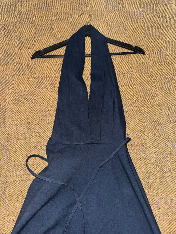 Kadın Lacivert Uzun V Yaka Keten Elbise