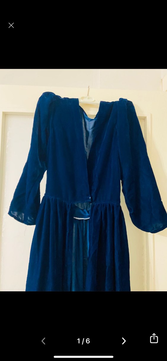 Lacivert uzun kollu, bol kesim vintage gotik tarzda kadın elbisesi. Düz, koyu renkte ve yumuşak dokulu kumaştan üretilmiştir.