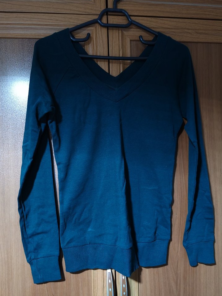Lacivert denim kumaştan, V yaka ve uzun kollu, vücuda oturan kadın trikosudur. Günlük kullanıma uygun, rahat sokak stili sunar.