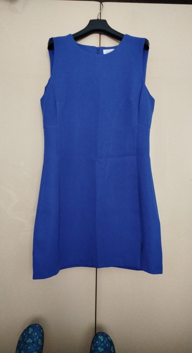 Lacivert kolsuz kalem elbise, V yakalı ve regular fit kesime sahiptir. Sentetik kumaştan üretilmiş, minimalist ve zahmetsiz şıklık sunar. Midi boy ve sade tasarım, ofis için uygundur. boy 90 cm basen 90 cm önden 10 cm yırtmaç