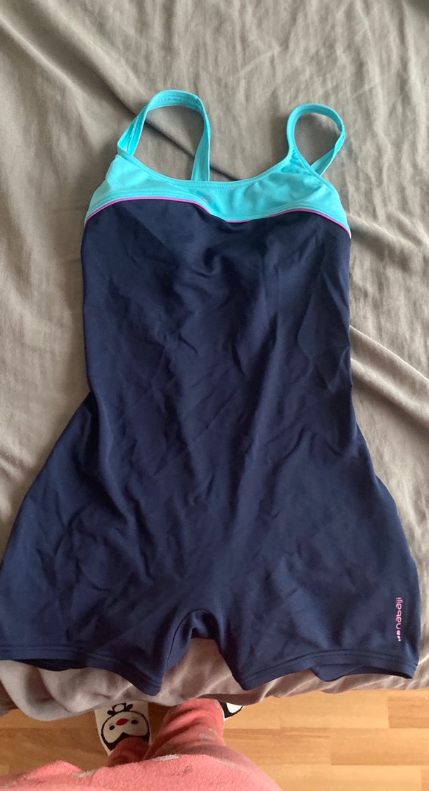 Lacivert ve turkuaz renklerde, drapeli detaylı, kolsuz ve vücuda oturan kadın spor mayosu. Normcore tarzıyla sportif kullanıma uygundur. ♀️kendiliğinden şortlu