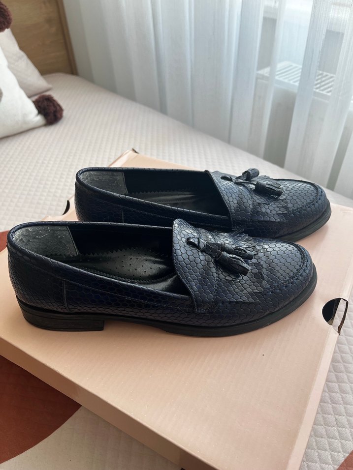 Kadın Lacivert Yılan Derisi Desenli Püsküllü Klasik Ayakkabı