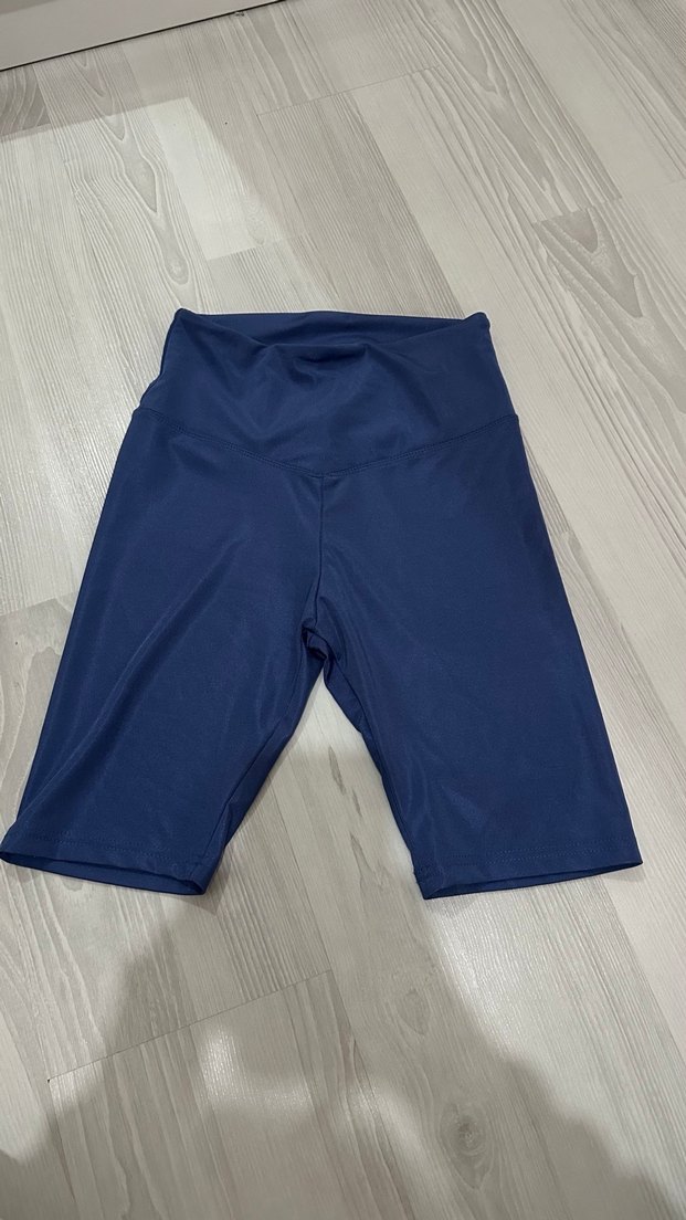 Kadınlar için yüksek bel, düz lacivert mini şort, yumuşak sentetik kumaştan, spor ve sokak stili için uygundur.