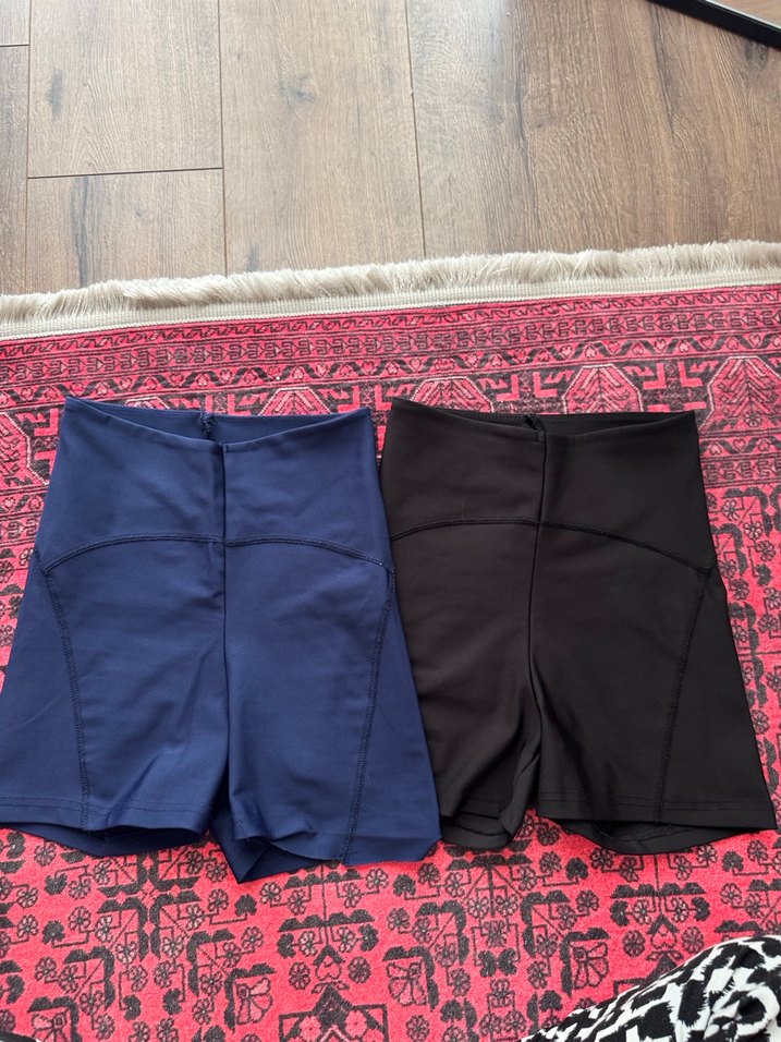 Kadınlar için lacivert renkte, yüksek bel ve dar kesim mini şort. Sentetik kumaştan, sportif ve şehir stili için uygundur, rahat ve şık bir görünüm sunar.