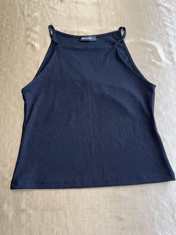 Kadınlar için yüksek yakalı, dar kesim ve sentetik kumaştan lacivert atlet. Günlük kullanıma uygun, sokak stili ve athleisure tarzında. ️
