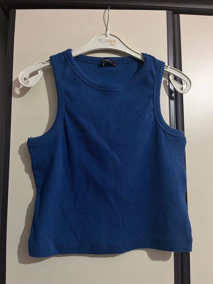 Kadınlar için yüksek yakalı, kolsuz ve lacivert renkli dar kesim tişört crop . Pürüzsüz sentetik kumaştan, rahat ve şık bir görünüm sunar, günlük kullanıma uygundur.