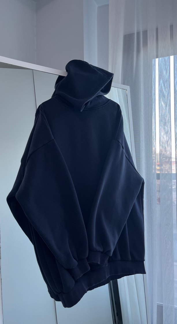 Yumuşak ve sıcak kumaştan, yüksek yakalı, uzun kollu, oversize siyah sweatshirt. Midi boy ve sade tasarımıyla günlük ve sokak stiline uygundur.
