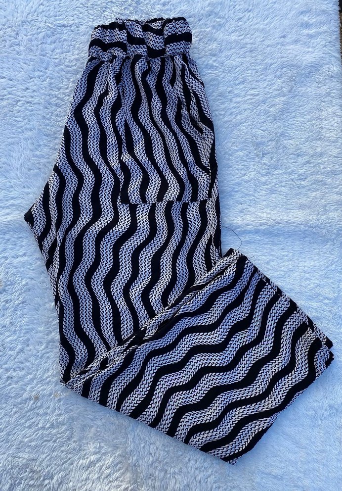 Kadın Lacivert Zebra Desenli Pilili Kumaş Pantolon