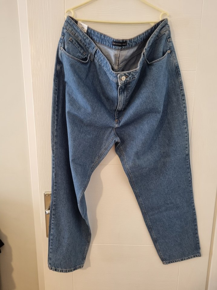 Mavi denim kumaştan, kemerli ve regular fit kesime sahip kadın jean. Midi boy ve günlük sokak stili için uygundur. likrasız hiç giyilmedi 41-31 beden