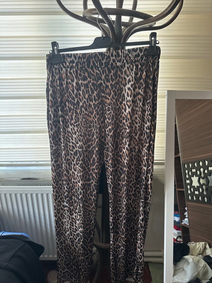 Kadın Leopar Desenli Bol Kesim Pantolon