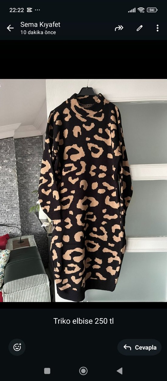 Kadın Leopar Desenli Uzun Triko Elbise