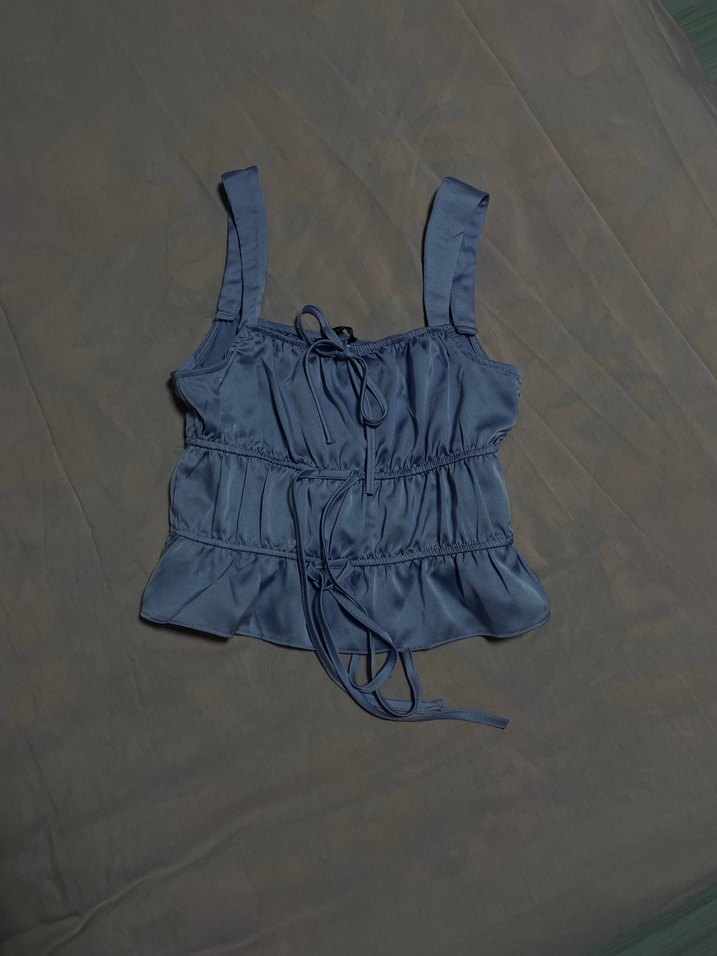 lila renkli, askılı ve kısa boyda, vücuda oturan bu büstiyer, fırfır detaylarına sahiptir. Askısız görünüme sahip, sentetik kumaştan üretilmiştir.