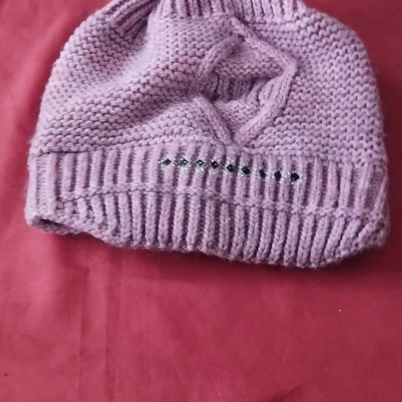 Kadınlar için lila renkte, örgü triko dokulu, küçük dekoratif detaylara sahip rahat bere. ☁️