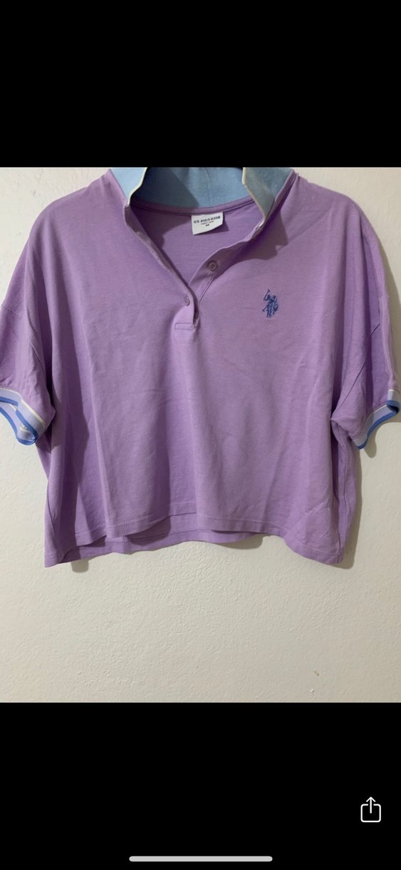 Kadın lila Orjinal polo crop Tişört