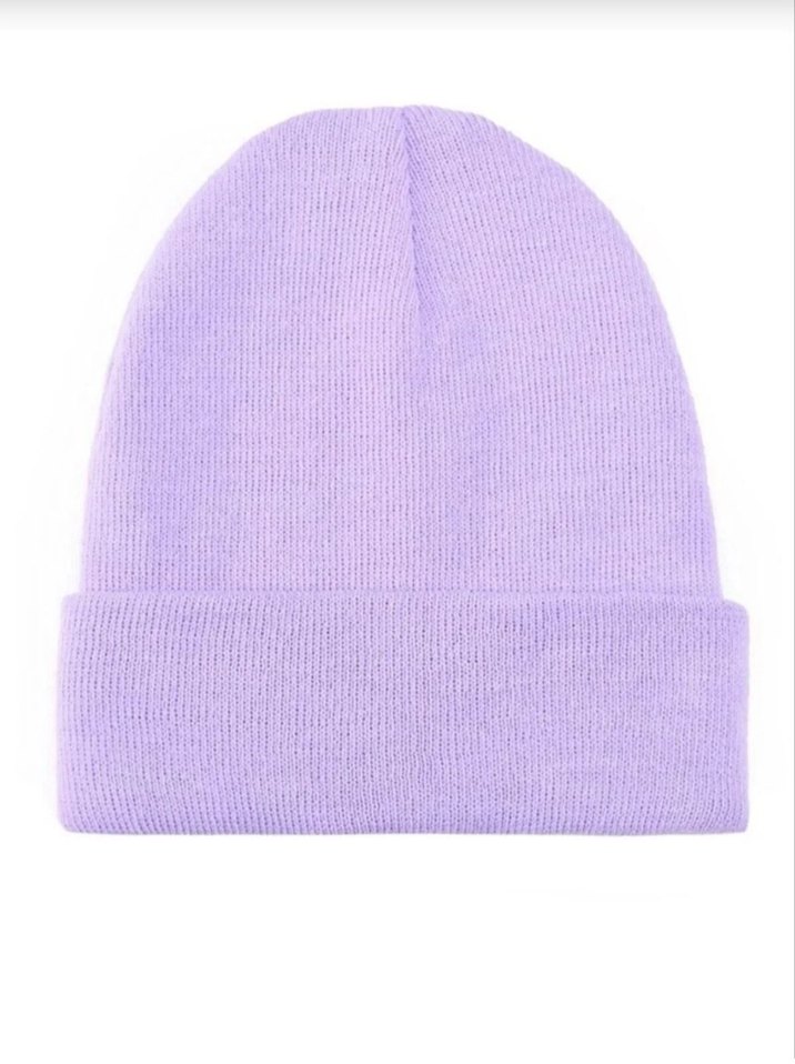 Lila renkte, yumuşak ve sıcak dokulu örgü bere. Katlamalı manşetli sade ve rahat tasarım sunar.