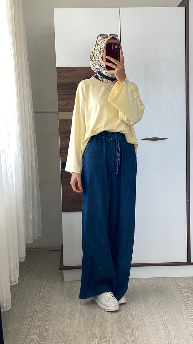 Normal boy boy kesim, midi uzunlukta, tonlarda düz desenli kadın denim pantolon. Günlük rahat stil için uygundur.