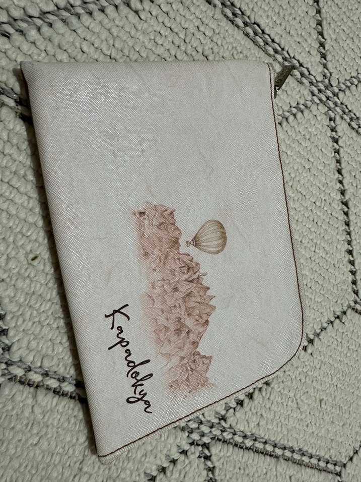 Bej renkte, baskılı ve kadın makyaj çanta.