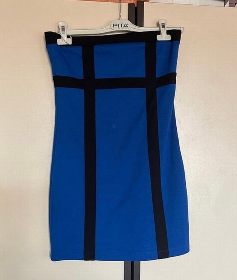 Bu mavi askılı midi elbise, siyah çizgiler ve kuşak detayıyla sokak modası ve athleisure tarzını birleştirir. Günlük kullanıma uygun.