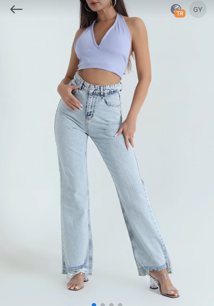 Bağcıklı bel ve bol kesimiyle, pastel mavi renkli bağlama desenli denim pantolon, günlük rahat kullanım için uygundur. Hııı