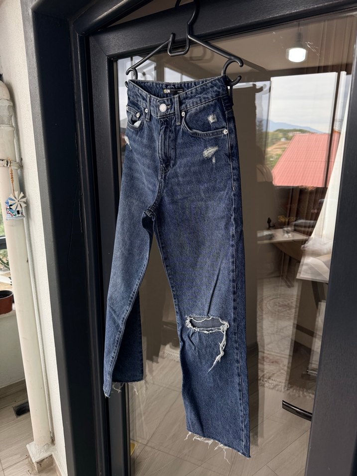 mavi denim pantolon. ve barcelona kesim, günlük kullanıma uygun rahat sokak stili jean.