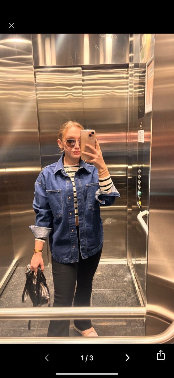 Kadınlar için, açık mavi bağlama desenli, düğmeli, uzun kollu ve normal kesim kot ceket. Günlük kullanım için uygundur. ✨Resimdeki gün giydim ✨Kotondan almıstım . ✨Oversize kalıbı vardır . ✨Markası zara değil , Kotondur .