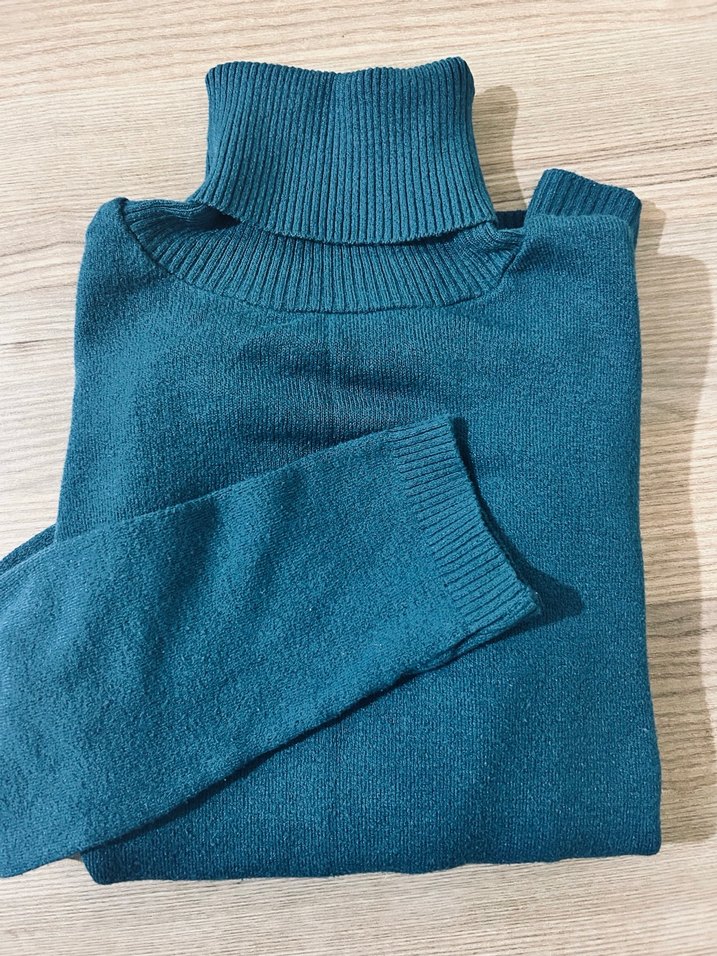 Kadınlar için balıkçı yaka, uzun kollu ve vücudu saran Petrol mavisi renge sahip , yumuşak ve sıcak dokulu triko penye. Günlük kullanıma uygundur. 4. Fotoda bilek kısmında küçük bir leke var fiyatı uygun tutulmuştur. Ürün zara değildir, markasını bilmiyorum ama dokusu harika. S-M bedenlerine çok güzel olacaktır. Ürün bana da oluyor ben L beden kullanıyorum
