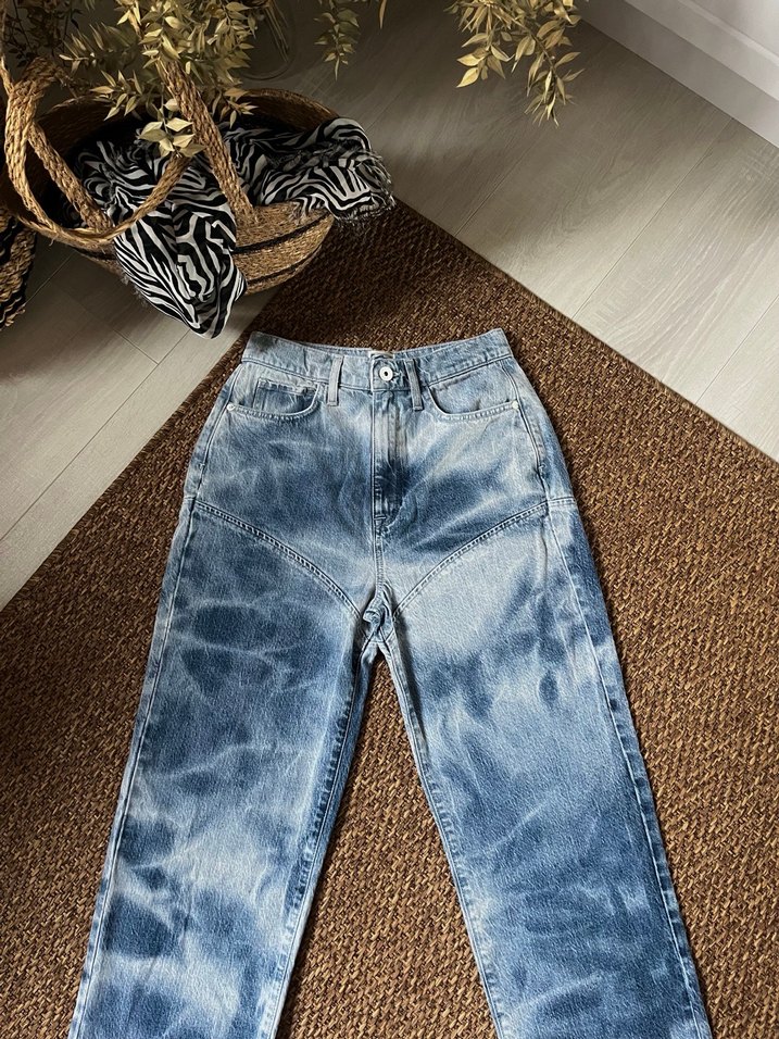 Kadınlar için batik desenli, kemerli ve normal boyda mavi-gri tonlarda denim jean. Rahat kesimi ve sokak stili için uygun.
