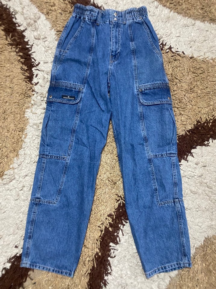 Açık mavi renkte, bol kesim ve bel detaylı kadın denim pantolon. Midi boy yanlardan ceplidir alttan lastiklidir. Temiz birkaç kez kullanılmıştır ihtiyaçtan satıyorum, herhangi bir kusuru yoktur.