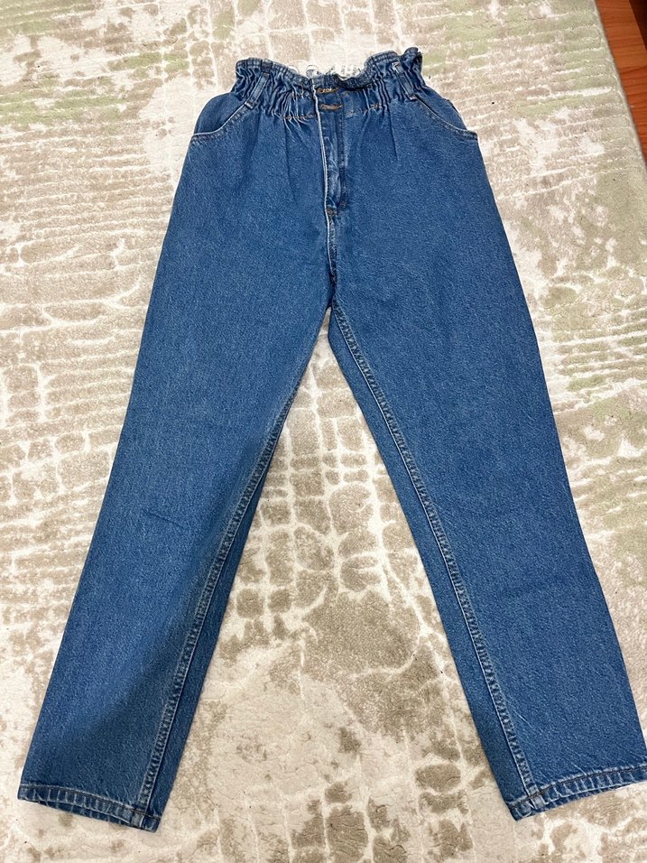 Kadın Mavi Bel Detaylı Bol Kesim Pantolon