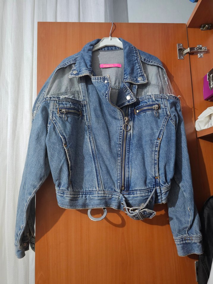Kadın Mavi Bel Detaylı Kot Ceket