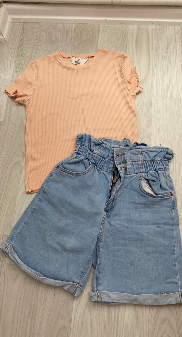 Açık mavi renkte, bol kesim, bel detaylı yüksek bel ve katlanmış paçalı kısa kot şort. Günlük sokak stili için uygun.