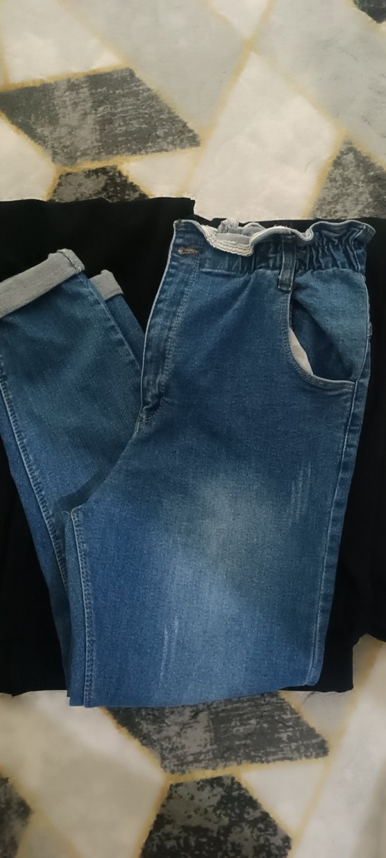 Mavi denimden yapılmış, belden kemerli ve salaş kesim olan bu pantolon, normal midi boydadır. Günlük rahat sokak stili için uygundur.