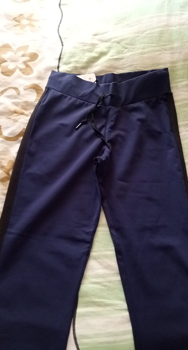 Kadınlar için koyu mavi, bol kesim ve midi boyda, sentetik kumaştan yapılmış beli bağcıklı rahat pantolon. Günlük kullanım için uygundur.