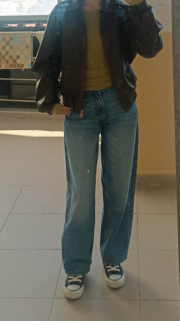 Bol kesim, mavi denim cep detaylı jean. Günlük rahat sokak tarzı için uygundur. sorunsuzdur. 32 beden ama kalıbı büyük tam 34 bedene uygun