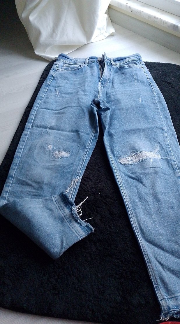 Kadınlar için bol kesim, mavi denim jean. Tokalı detaylı ve midi boyda, günlük sokak stili için uygun.