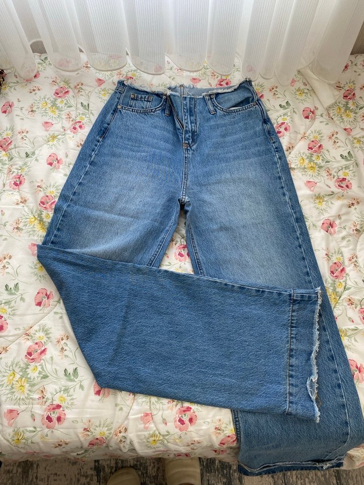 Kadın Mavi Bol Kesim Denim Pantolon