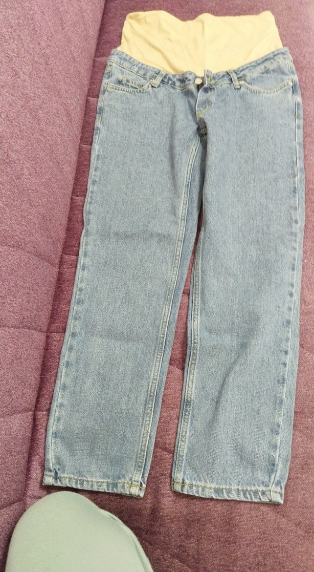 Mavi denimden, bol kesim ve hamile kadın pantolon. Günlük kullanıma uygun, pastel tonuyla rahat ve şık bir normcore tarz sunar.