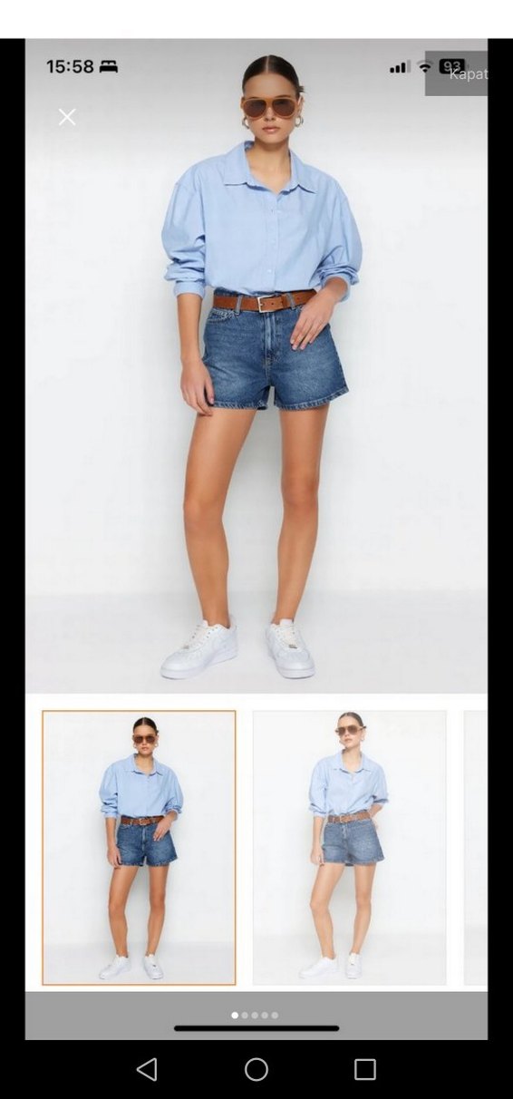 Kadın Mavi Bol Kesim Kemerli Kot Şort