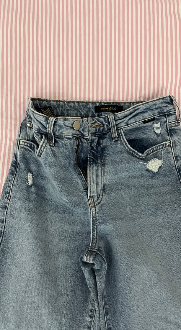 Kadınlar için mavi kot pantolon, bol kesim ve kemerli bel detayına sahip acık mavi renk 27/27 hiç bir kusuru yoktur