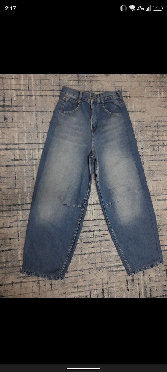 Kadınlar için bol kesim, midi boy mavi denim pantolon. Sokak stiline uygun, günlük kullanıma rahat ve şık bir tasarım sunar.