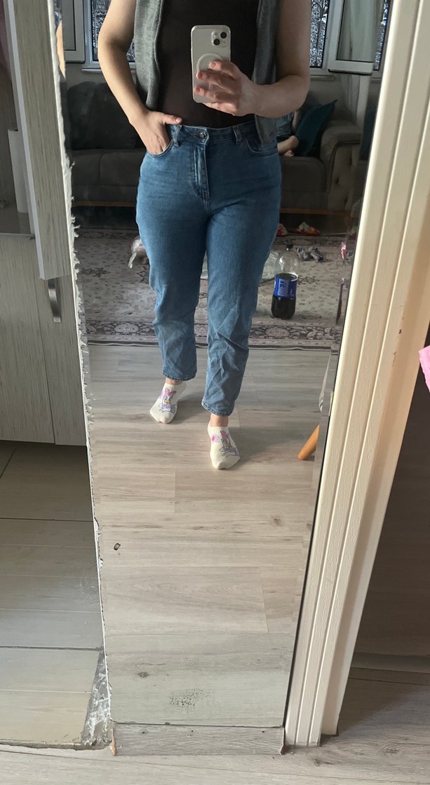 Kadınlar için bol kesim ve midi boyda, mavi-gri tonlarında denim pantolon. Günlük kullanıma uygun, zahmetsiz şıklık sunar.