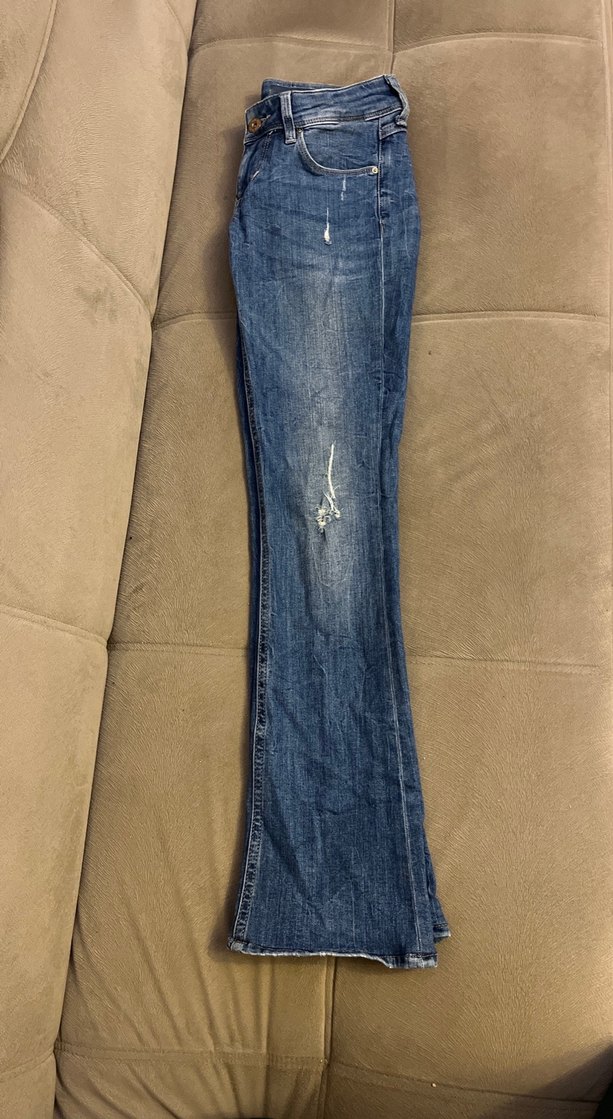 Kadın Mavi Bol Kesim Midi Denim Pantolon hafif İspanyol