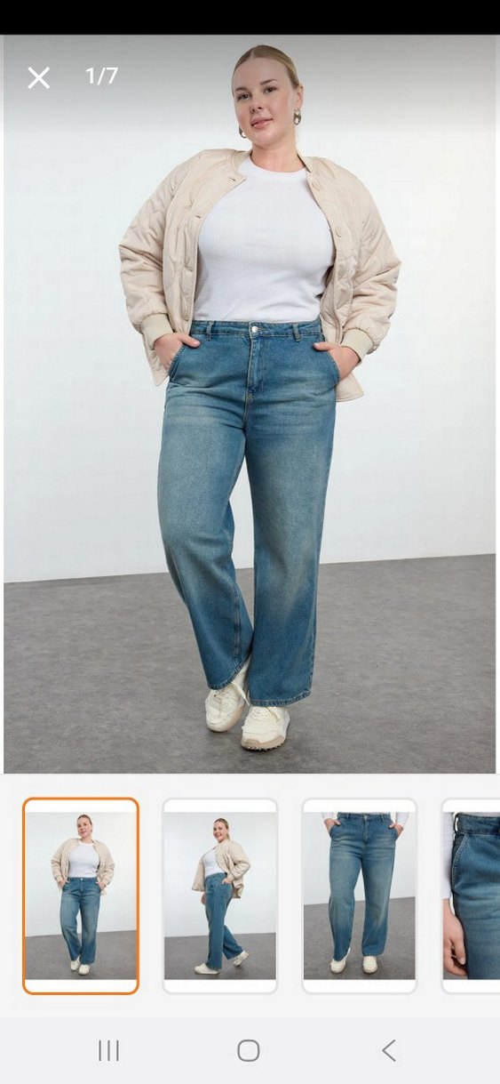 Bol kesim, normal boyda, denim kumaştan kadın jean. Günlük kullanıma uygun, zahmetsiz şıklık sunar. 2 kere anca kullandım sevemedim o yüzden giymiyorum