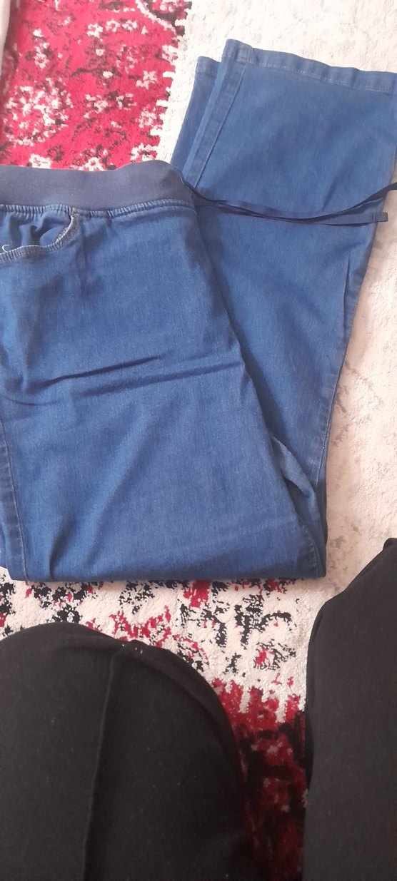 Mavi denim kadın kot pantolon, bol kesim ve normal midi boy. Bel kemeri vardır, günlük sokak stili için uygundur.